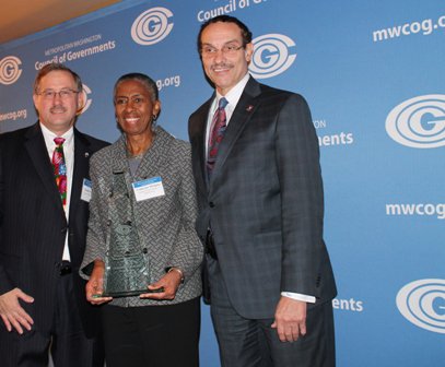 WASHINGTON, DC – At its Annual Membership and Awards Luncheon, the Metropolitan Washington Council of Governments (COG), a nonprofit association of 300 area elected officials, presented Fairfax County Supervisor Cathy Hudgins with the organization’s highest honor. Hudgins received COG’s Elizabeth and David Scull Metropolitan Public Service Award for her work as Chairman of the Board of Directors of the Washington Metropolitan Area Transit Authority (WMATA) which oversees the region’s Metro system.
