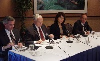 Business executives Bill Barkovic (Calibre), Pete Minan (KPMG LLP) and Diane Duggan (Discovery Communications) spoke on a panel, moderated by Bob Peck, about their own telework programs. Duggan, Executive VP of Information Technology for Discovery, said that her company provides an array of alternative commuting benefits that range from telecommuting to buying new sneakers for employees who walk to work. The speakers agreed that telework has increased productivity and employee morale, reduced office space and parking expenses, and allowed their businesses to attract and retain highly qualified workers during a competitive job market.