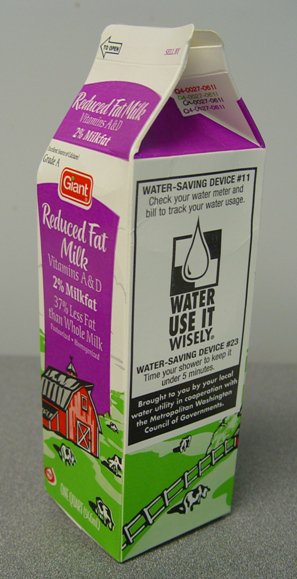Thousands of milk cartons will display water saving tips thanks to a new partnership between Giant Food and the region's Wise Water Use campaign. For more information on the Wise Water Use campaign, click here.