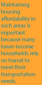 The study spells out a range of policy approaches for making affordable housing more available near transit stations depending on the unique characteristics and market pressures in individual station areas.