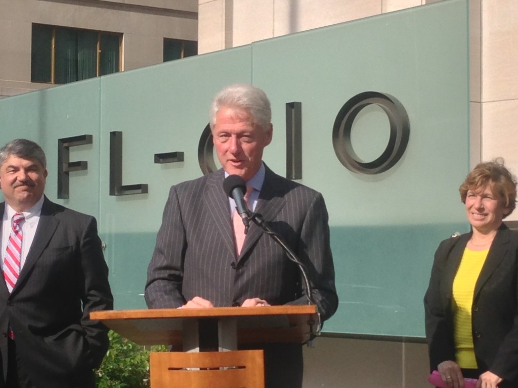 Former President Bill Clinton speaking at the launch of the AFL-CIO headquarters retrofit project aimed at improving the building’s energy efficiency.