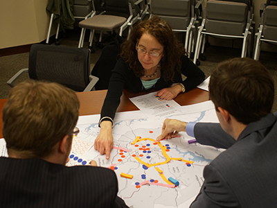 In the first part of the exercise, groups each proposed on a map where to locate nearly 700,000 new households and more than 1.3 million new jobs that are expected in the region by 2040, and what transportation improvements would need to be made to accommodate that new growth.
