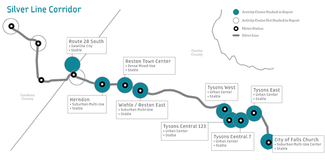 So with the Silver Line up-and-running and the second phase to Dulles Airport and Loudoun County scheduled to open in 2018 what will this mean for the different business and residential hubs a.k.a. Activity Centers along the corridor like Tysons Reston and Herndon? And what are the strategic investments area leaders should consider making around these centers to advance our region’s economic housing and development goals?