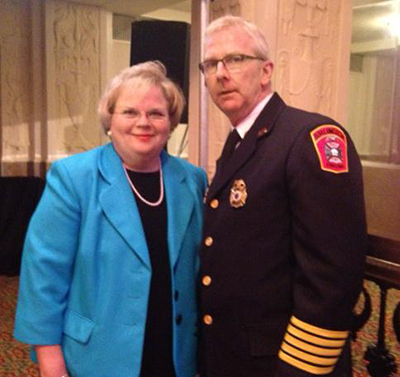 Arlington County Manager Barbara Donnellan and County Fire Chief James Schwartz at the COG-BOT-Red Cross briefing.