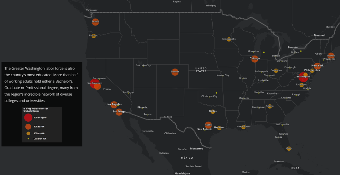 As highlighted in a joint regional letter this fall by officials from the District, Maryland, and Virginia as well as interactive maps and data on the AmazonDMV microsite, Greater Washington's unique strengths make it the best region in North America for anchoring Amazon’s new headquarters.