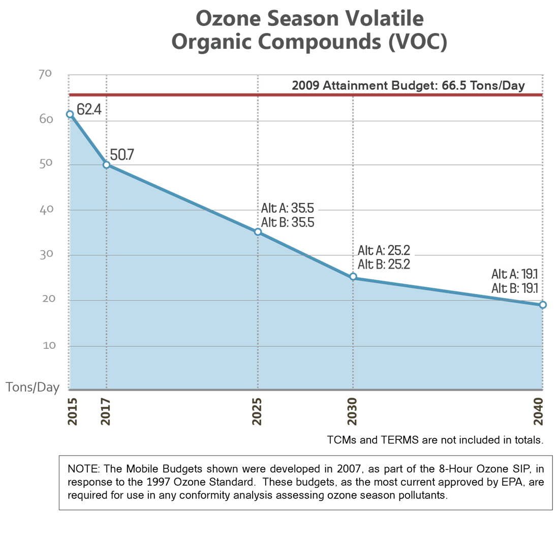MWAQC and the TPB are concerned with emissions of smog-producing Volatile Organic Compounds (VOCs) and Nitrogen Oxides (NOx). These pollutants combine in sunlight on hot summer days to form ground-level ozone. Motor vehicles are responsible for a large portion of VOC and NOx emissions in the region, but so are non-mobile sources like power plants.